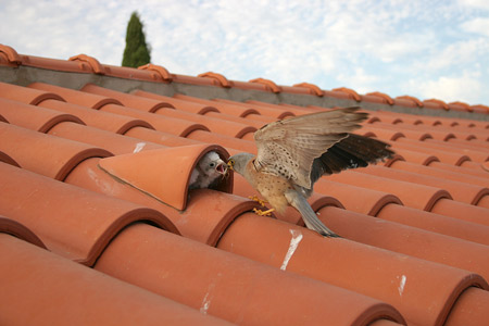 El Cernícalo Primilla es una especie antropófila que nidifica con frecuencia en viviendas humanas. Esta pequeña ave rapaz, inofensiva para la caza menor, las aves de corral o pájaros de jaula, a la vez que fácil de observar, aporta al entorno humano un matiz natural junto a otras especies urbanas salvajes como la Lechuza Blanca, la Cigüeña o la Golondrina, que podrían ser el reflejo de una biodiversidad urbana bien conservada.